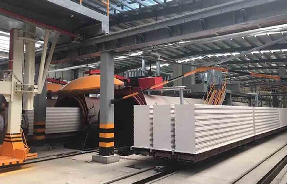 The half-finished “panel cake” will be grouped and sent into autoclaves to get higher strength by high-pressure heatings.
